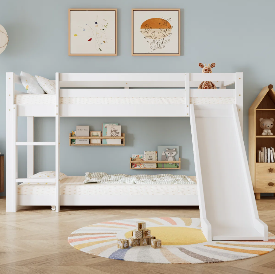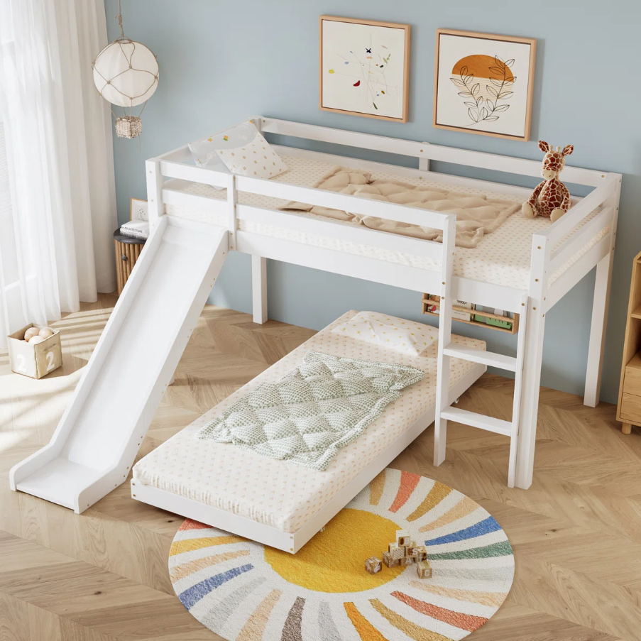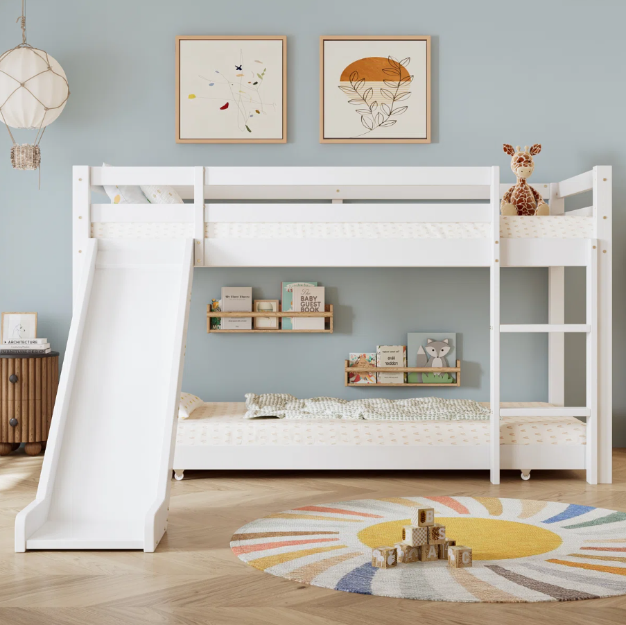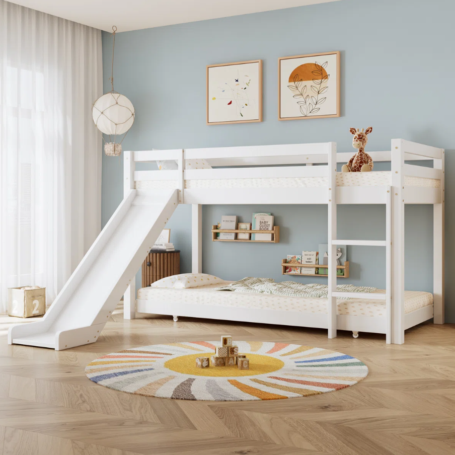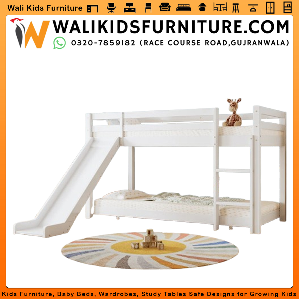 Crafted from high-quality laminated plywood bunk bed material, this durable children bunk bed Pakistan ensures long-lasting strength and safety. The playful slide adds excitement to everyday routines, while the adjustable ladder offers flexible and safe access to the top bunk. Its clever space saving bunk bed structure includes an extendable lower bed, making it ideal for sleepovers or siblings sharing a room.