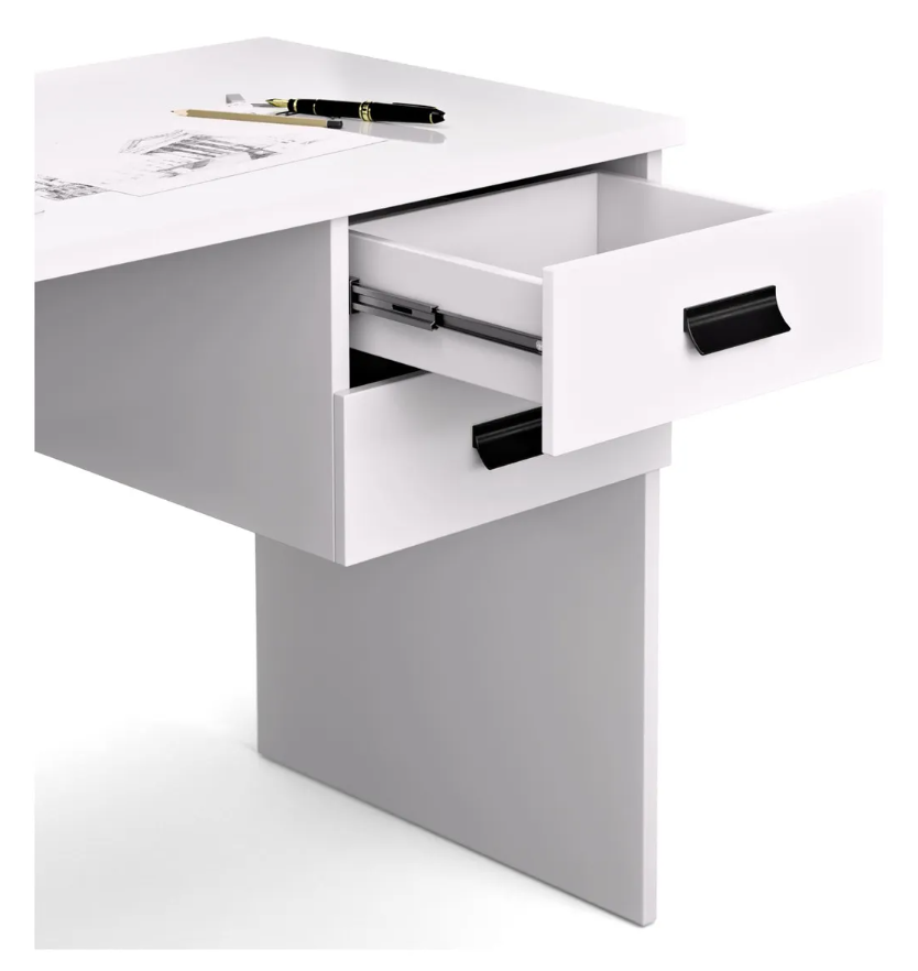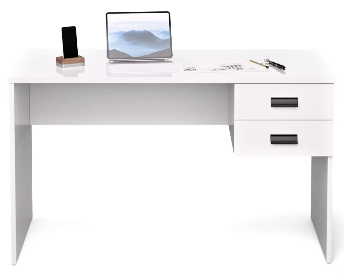 Crafted from premium MDF material, it features a smooth surface ideal for laptops, books, and accessories, while the two spacious drawers provide ample storage for your essentials. The modern design blends beautifully with any interior, offering a clean, minimalist look that enhances productivity and comfort.