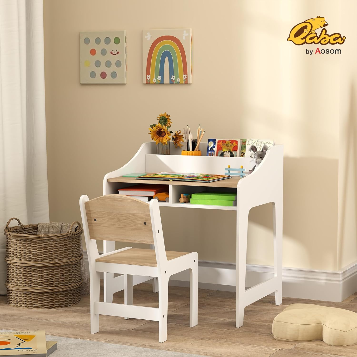 Kids Desk and Chair Set, Study Desk for Kids with Storage and Shelves
