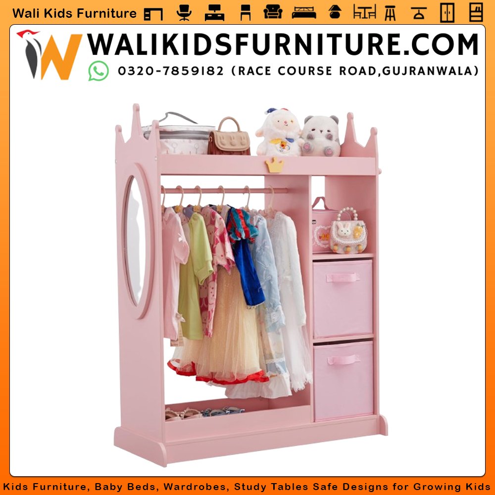 Organize your child’s room in a stylish and practical way with our Kids Dress Up Storage with Mirror, exclusively available at Wali Kids Furniture Gujranwala. This beautifully designed kids wardrobe is crafted from high-quality lamination plywood, offering durability, strength, and a smooth child-friendly finish. Perfect for everyday use, this functional kids armoire Pakistan helps keep clothes, costumes, and accessories neatly organized.