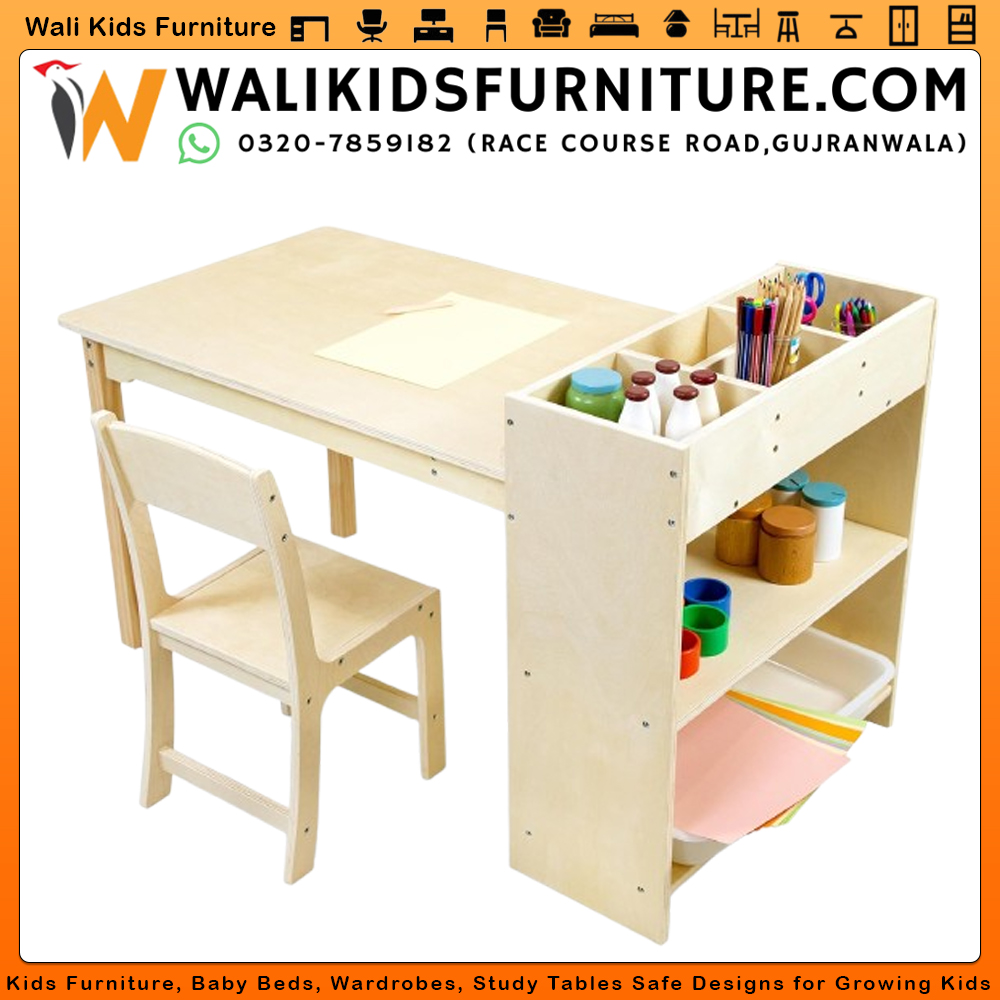 Kids Studay And Art Table and Chair Set, Birch Wooden Activity Craft Table, Kids Drawing Table