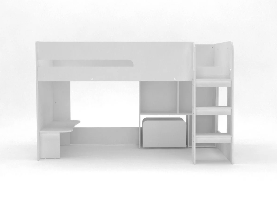 Built from high-quality laminated plywood, this mid sleeper bed for kids offers exceptional durability and a smooth finish that withstands daily use. The integrated bookcase and shelving provide handy space for school books, toys, and accessories — helping keep your child’s room tidy and organized while saving floor space. Whether you’re searching for a kids single bed with storage or a stylish centerpiece for your kid’s room, this design delivers both practicality and aesthetic appeal.